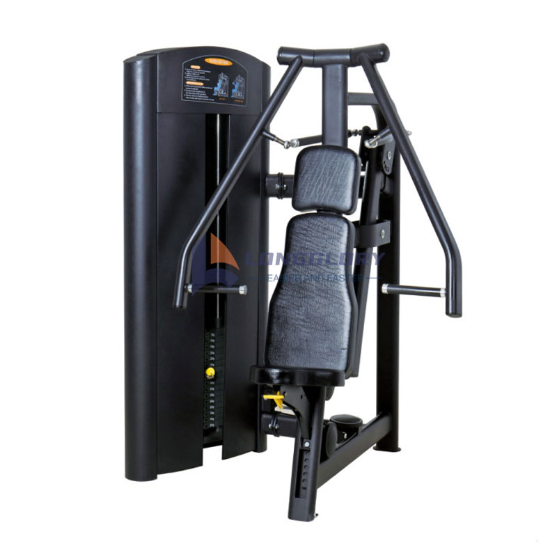 আসনটি সামঞ্জস্য করুন যাতে হ্যান্ডলগুলি উপরের বুকের সাথে একত্রিত হয়। উপযুক্ত ওজন সেট করুন, মাথা, উপরের পিছনে এবং ব্যাকরেস্টের বিরুদ্ধে পোঁদ দিয়ে দৃ firm ়ভাবে বসুন এবং কোরকে জড়িত করুন। আপনার বুক উঠানো এবং চোখ এগিয়ে রাখুন। হ্যান্ডলগুলি আঁকড়ে ধরুন, গভীরভাবে শ্বাস নিন এবং শ্বাসকষ্টের সময় বুকের অ্যাক্টিভেশন দিয়ে এগিয়ে যান। কনুই পুরোপুরি লক আউট করবেন না। শীর্ষে সংক্ষেপে বিরতি দিন, তারপরে শ্বাস নেওয়ার সময় আস্তে আস্তে ফিরে আসুন। নিয়ন্ত্রিত ফর্ম সহ আন্দোলন পুনরাবৃত্তি করুন।